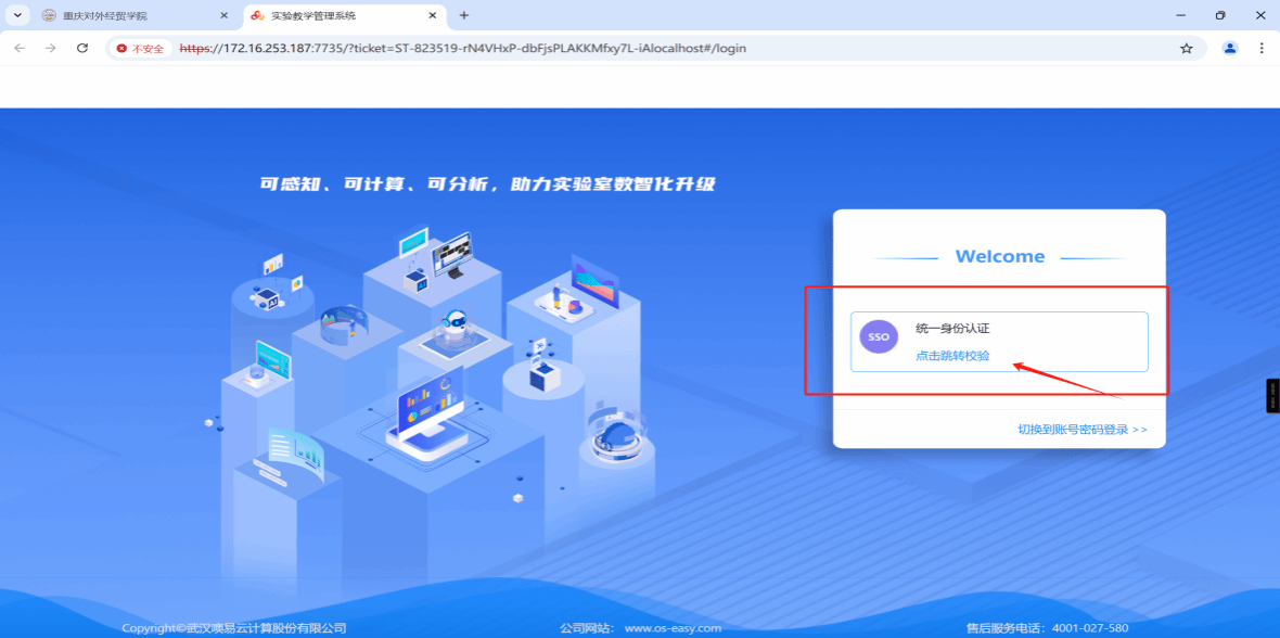 (三)跳转到该界面后点击“统一身份认证”(认证过一次,后续会直接进入实验教学管理系统)。