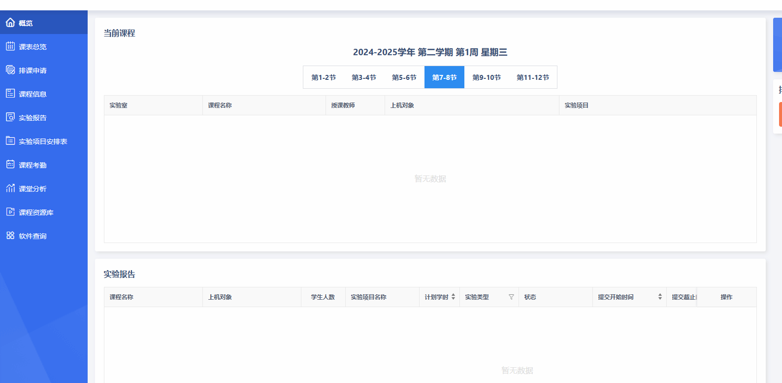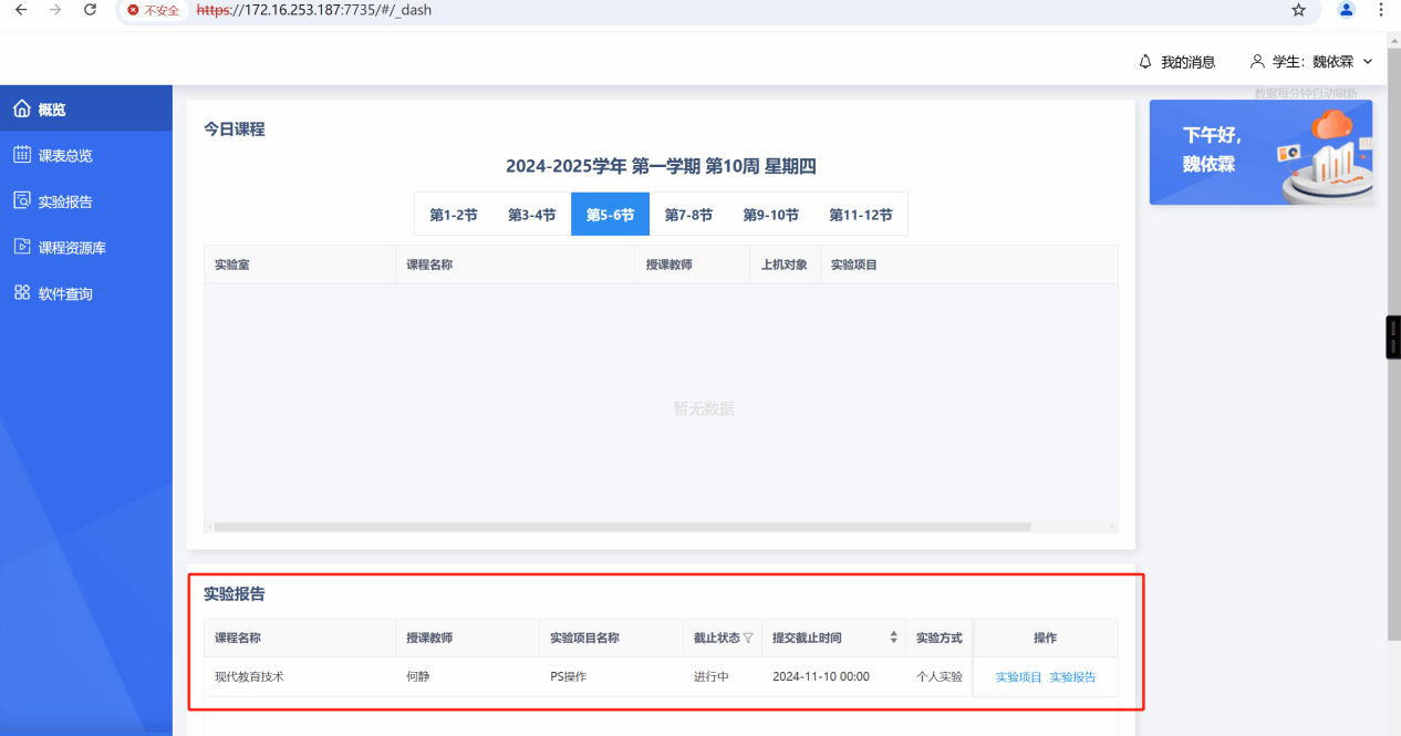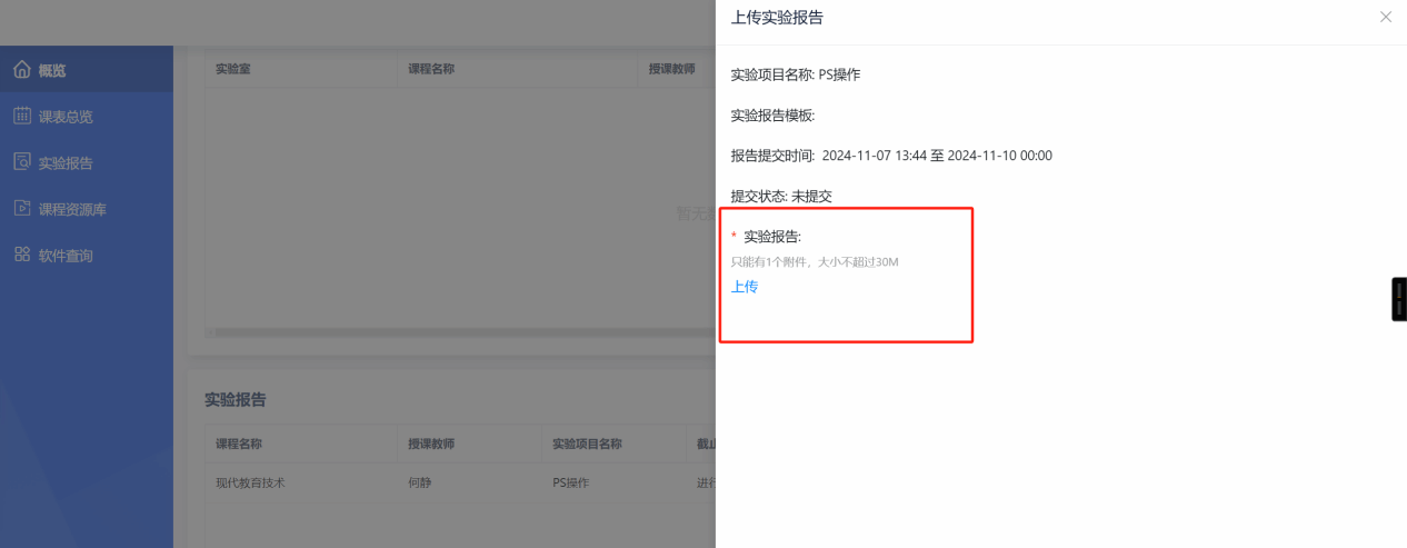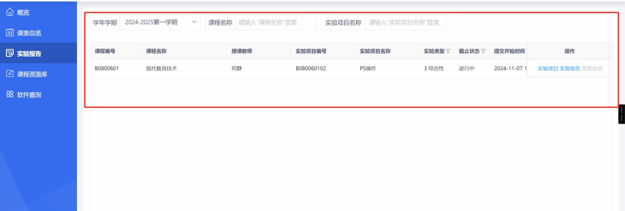 2.概览显示目前实验(训)课程具体信息、实验报告信息。