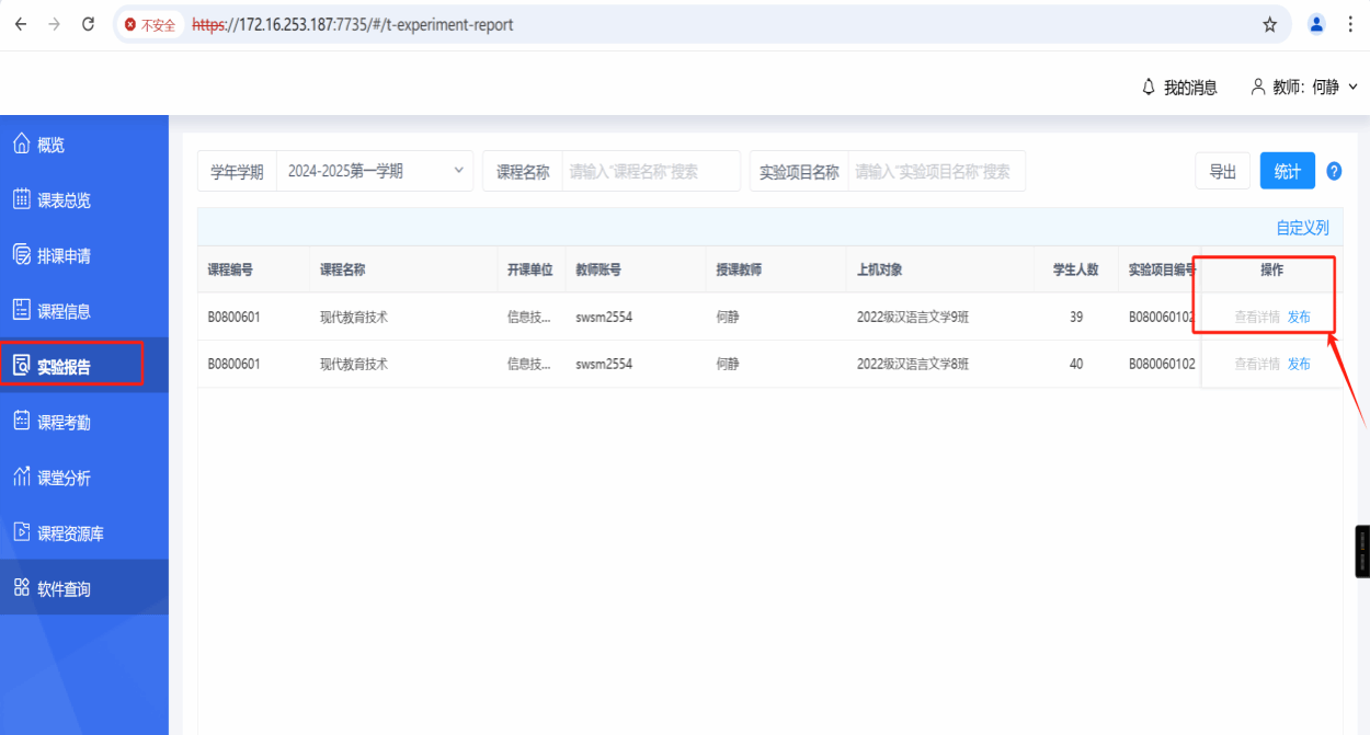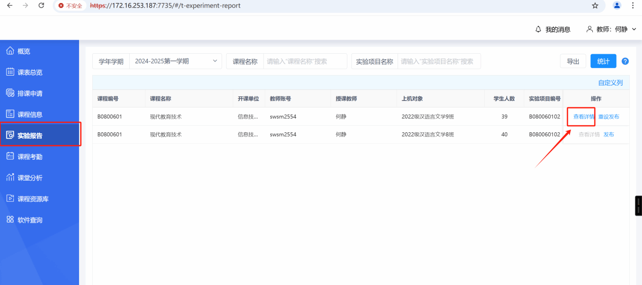 1.首页可以看到发布的实验报告情况、详情、课程以及实验项目。
