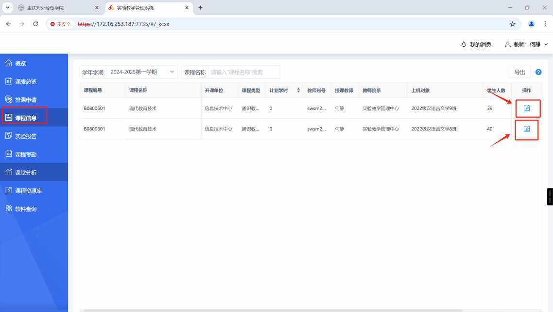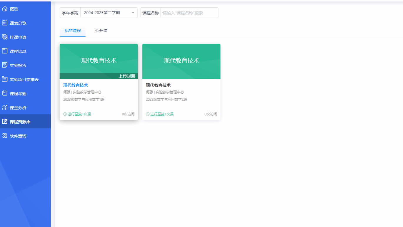 (三)课程资源库:老师可编辑行课班级信息,作为实验教学资源库。