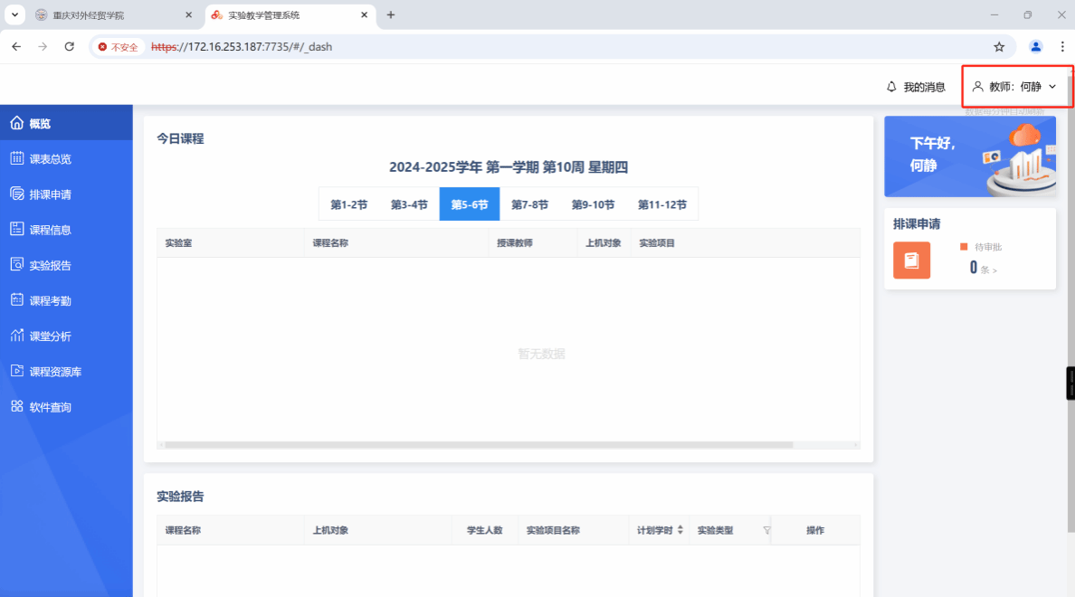 (四)若教师登录实验教学管理系统不存在课程信息可联系本学院实验员处理。