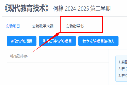 立项成功的《实验指导书》可上传至系统作为实验项目指导书。