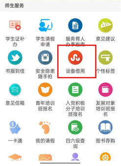 3. 在师生服务里面,点击“设备借用”。