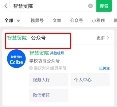 1.打开“智慧贸院”微信公众号