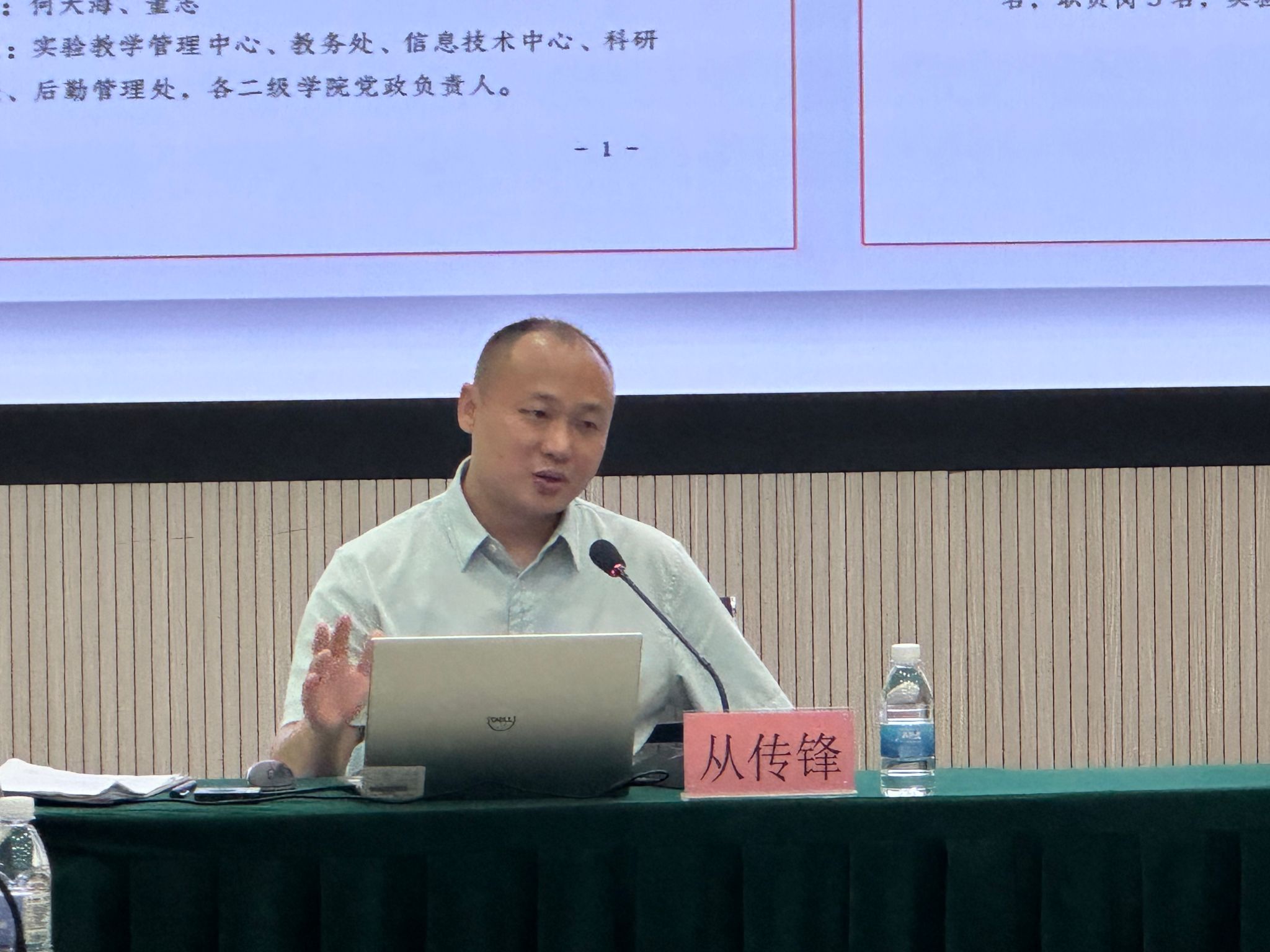 实验教学管理中心主任从传锋,就实验室安全工作事项向各二级单位及各领导进行汇报。以学校文件为导向,梳理学校实验建设队伍,完善实验员建设队伍;从顶层设计讲解实验室安全工作分管校领导层级,分别从保卫处、实验教学管理中心、后勤处、教务处、二级学院、物业公司六个板块梳理各单位安全责任,本次会议以二级学院安全职责为重点讲解。