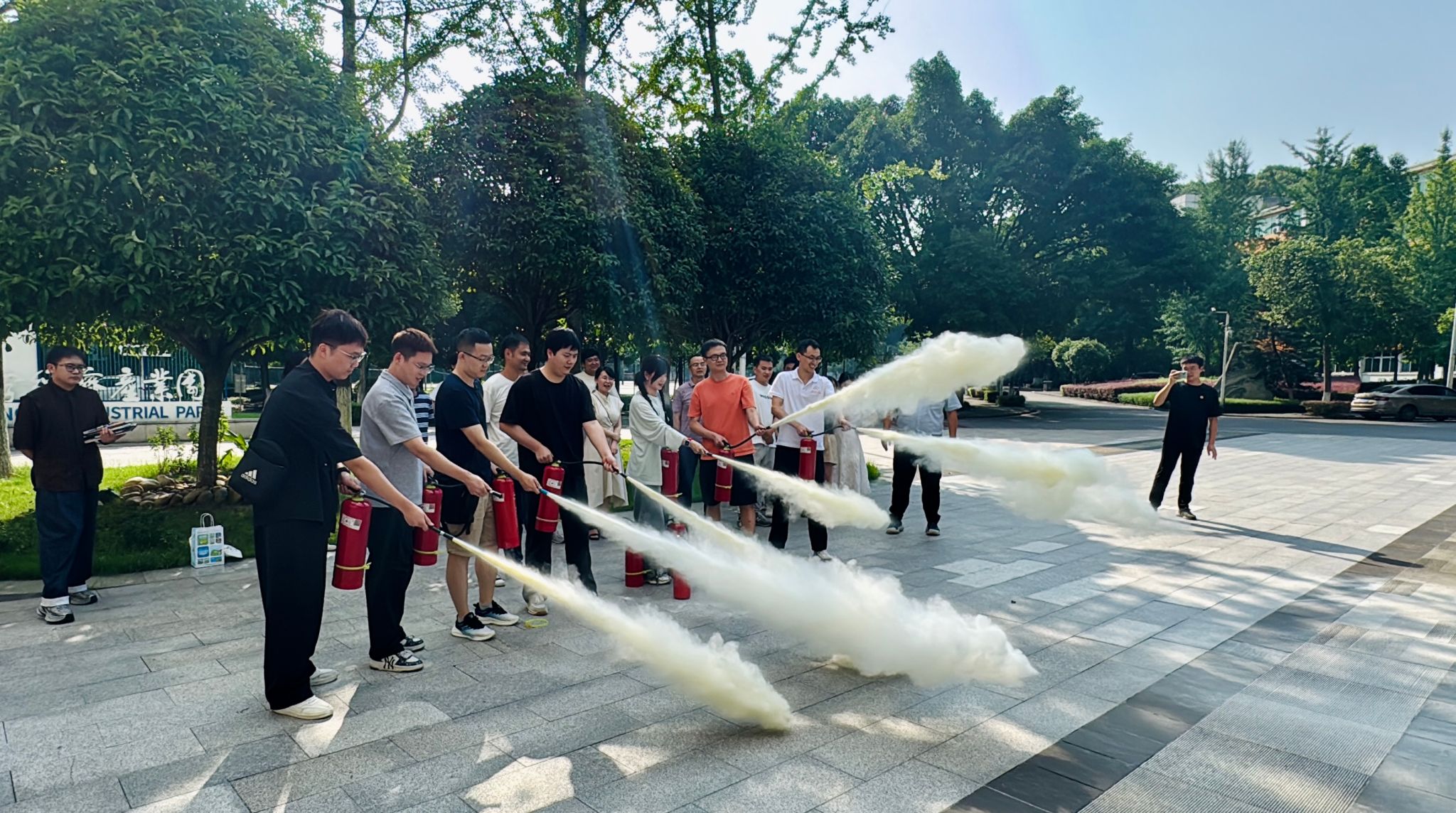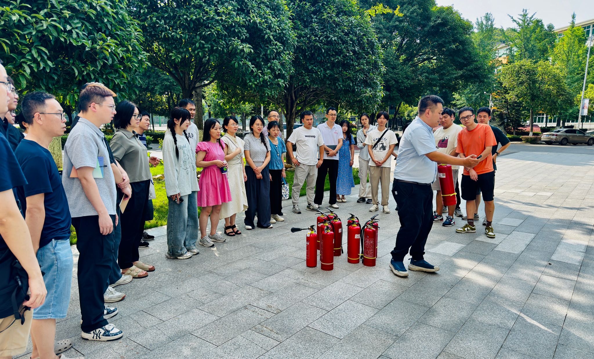 在实操环节,实验教学管理中心副主任杨帆向参训人员详细讲解了不同类型灭火器的适用范围、使用方法和注意事项,并组织参训人员进行现场模拟操作演练。通过亲身体验,参训人员切实掌握了灭火器的正确使用技能。