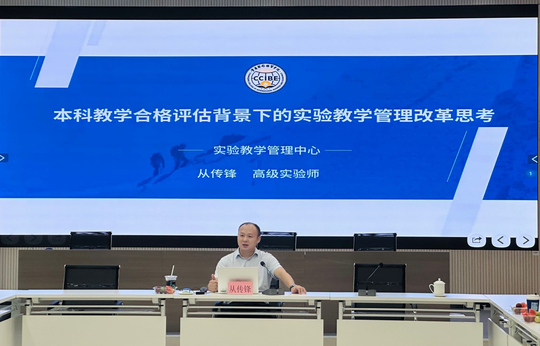 实验教学管理中心主任从传锋结合学校实际情况,向参训人员分享了本科教学合格评估背景下的实验教学管理改革思考。他围绕实验教学要素构成、实验教学质量评估、实验教学管理等环节,分享了实验教学内涵与实验教学管理理念,为参培人员厘清了实验教学各要素关系,提升了实验管理人员对实验教学的认识。