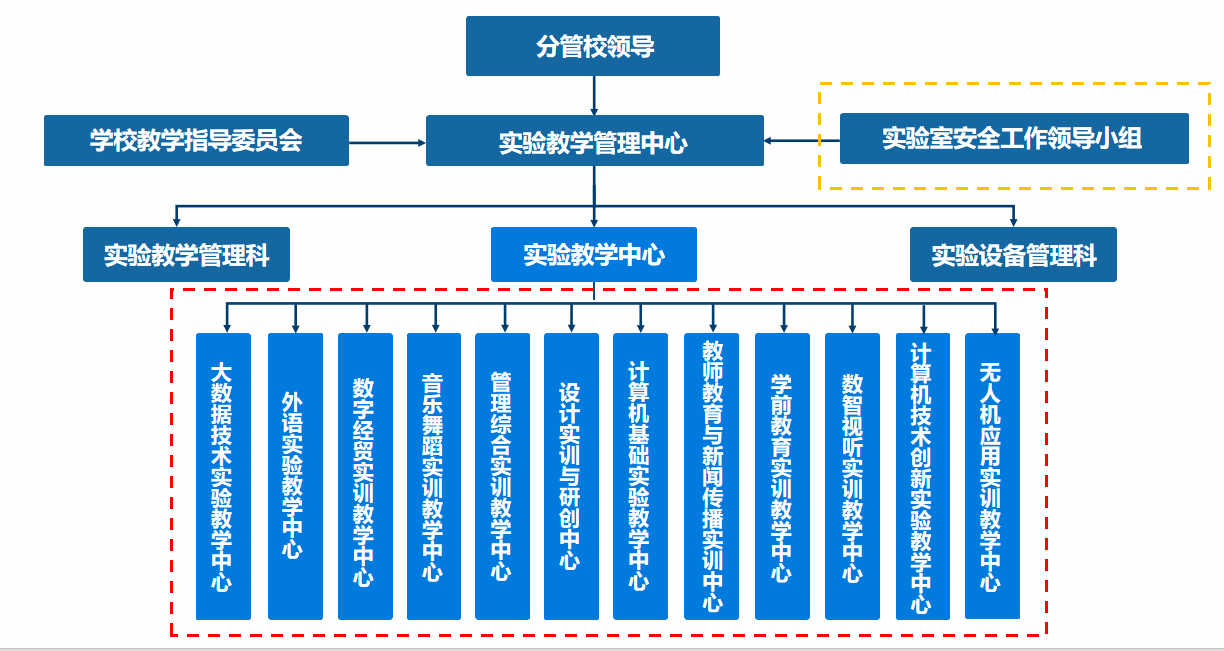 实验教学管理中心在分管校领导指导下,按照“统筹建设、规范管理、服务教学、安全为本、开放共享、提质增效”的理念,归口实验室规划与建设、实验教学管理、实验室开放、实验教学改革、实验室安全管理等工作。中心涵盖外语实验教学中心等12个校级实验(实训)教学中心,其中市级实验教学示范中心1个。建有各类实验(训)室300余间,面积达3万多平方米。中心主要职责如下: